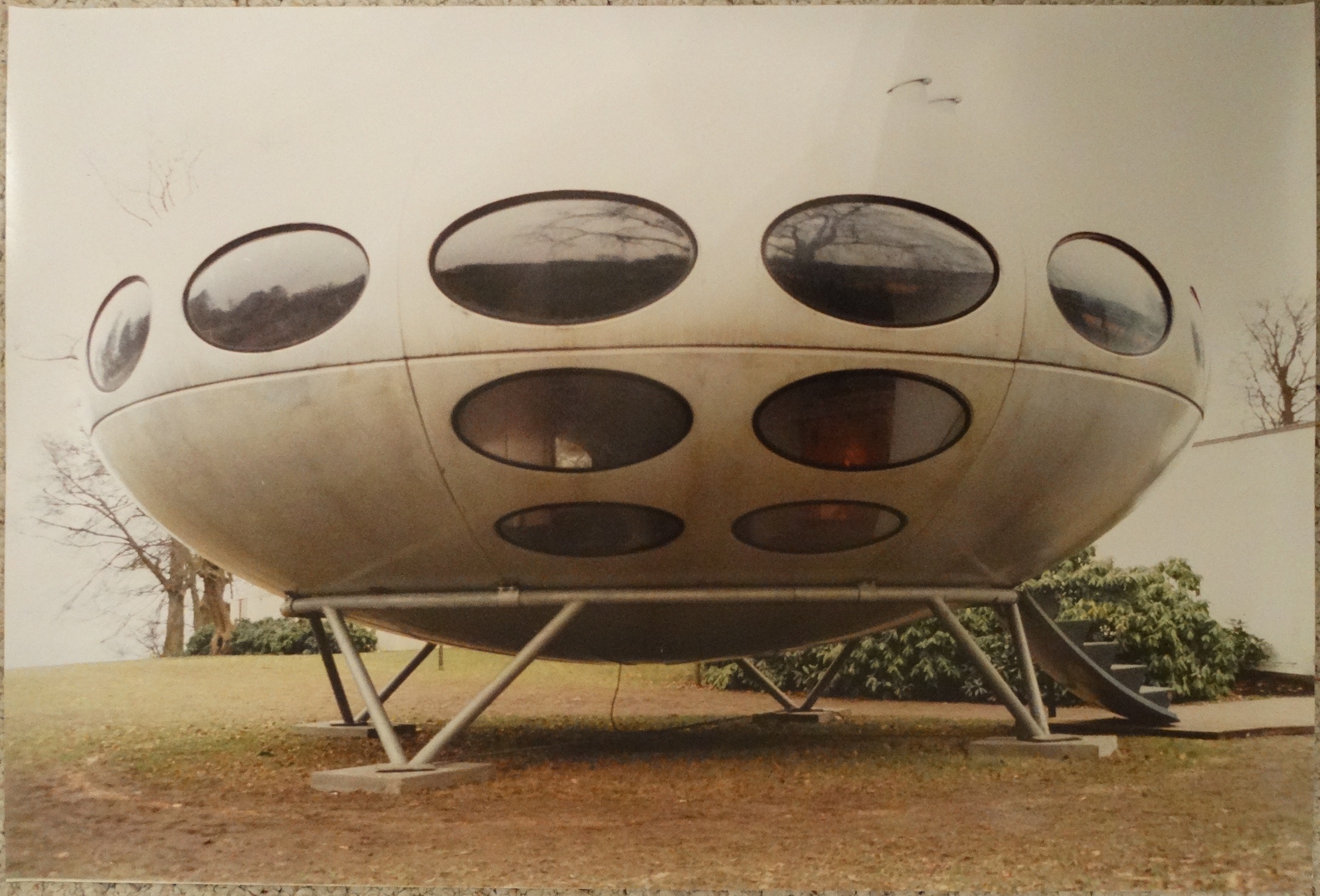 Coincidentally we recently came across this photo posted to Instagram by technicolor_totenkompf which shows a different, though similar, view of the Futuro during the exhibition.