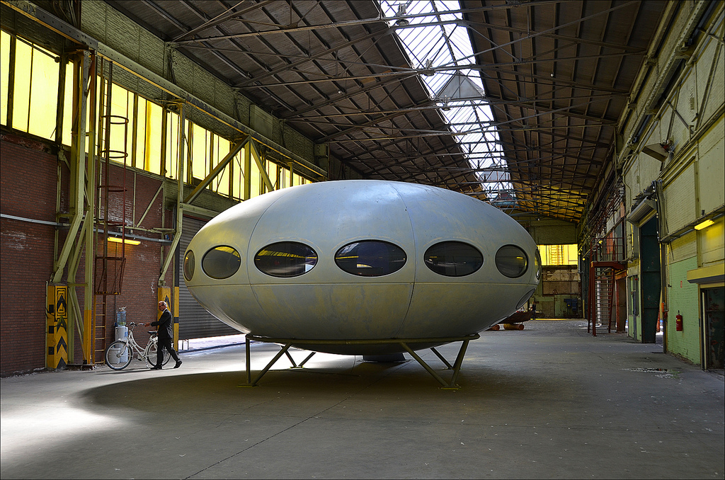 The first use of Futuro #000 by the Museum Boijmans Van Beuningen was as the main feature of "Futuro - Constructing Utopia", an exhibition that ran in the museum's Bodon gallery from 052111 to 100911. An excellent set of photos of the Futuro at that exhibition by Happy Famous Artists can be found below in the "original" section of this page.