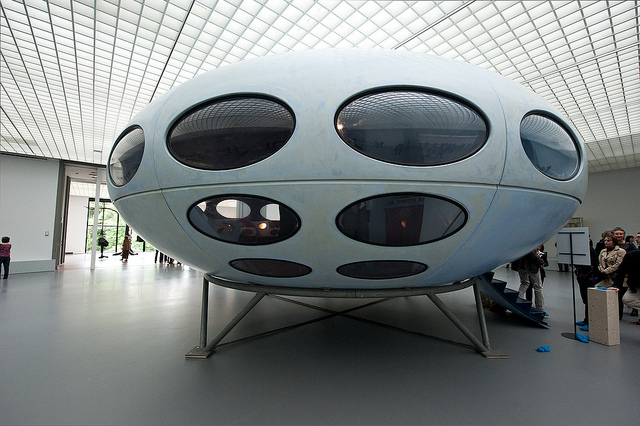 This wonderful set of photos show the restored Futuro prototype at the "Futuro - Constructing Utopia" exhibition. The photos, shot 052811, are by Happy Famous Artists and are displayed here under CC 2.0.