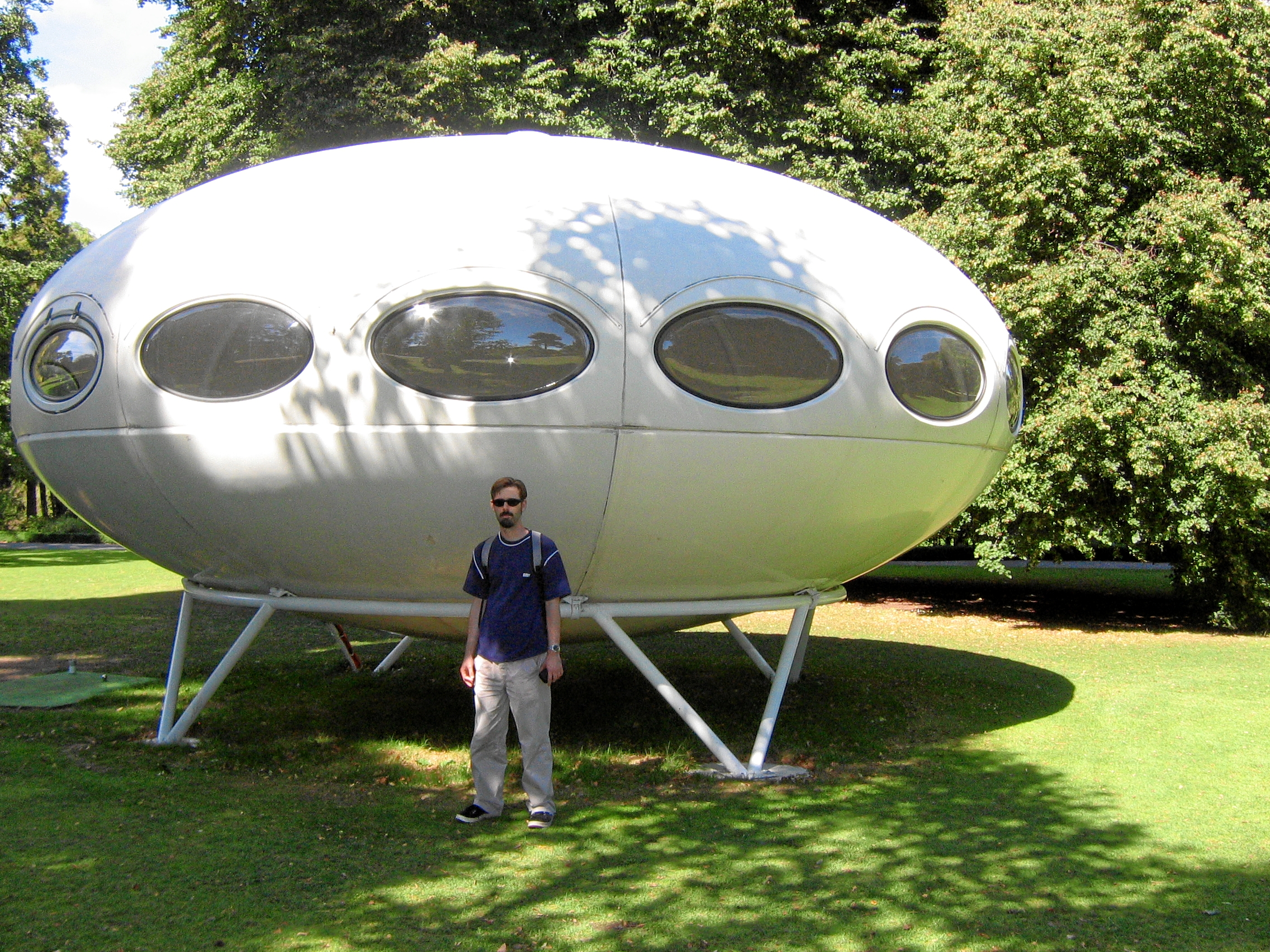 Alexander Larcombe recently sent us two great photos of this Futuro taken 032007 while it was at the Christchurch Botanic Gardens. They are displayed here with Alexander's permission - thanks Alexander.
