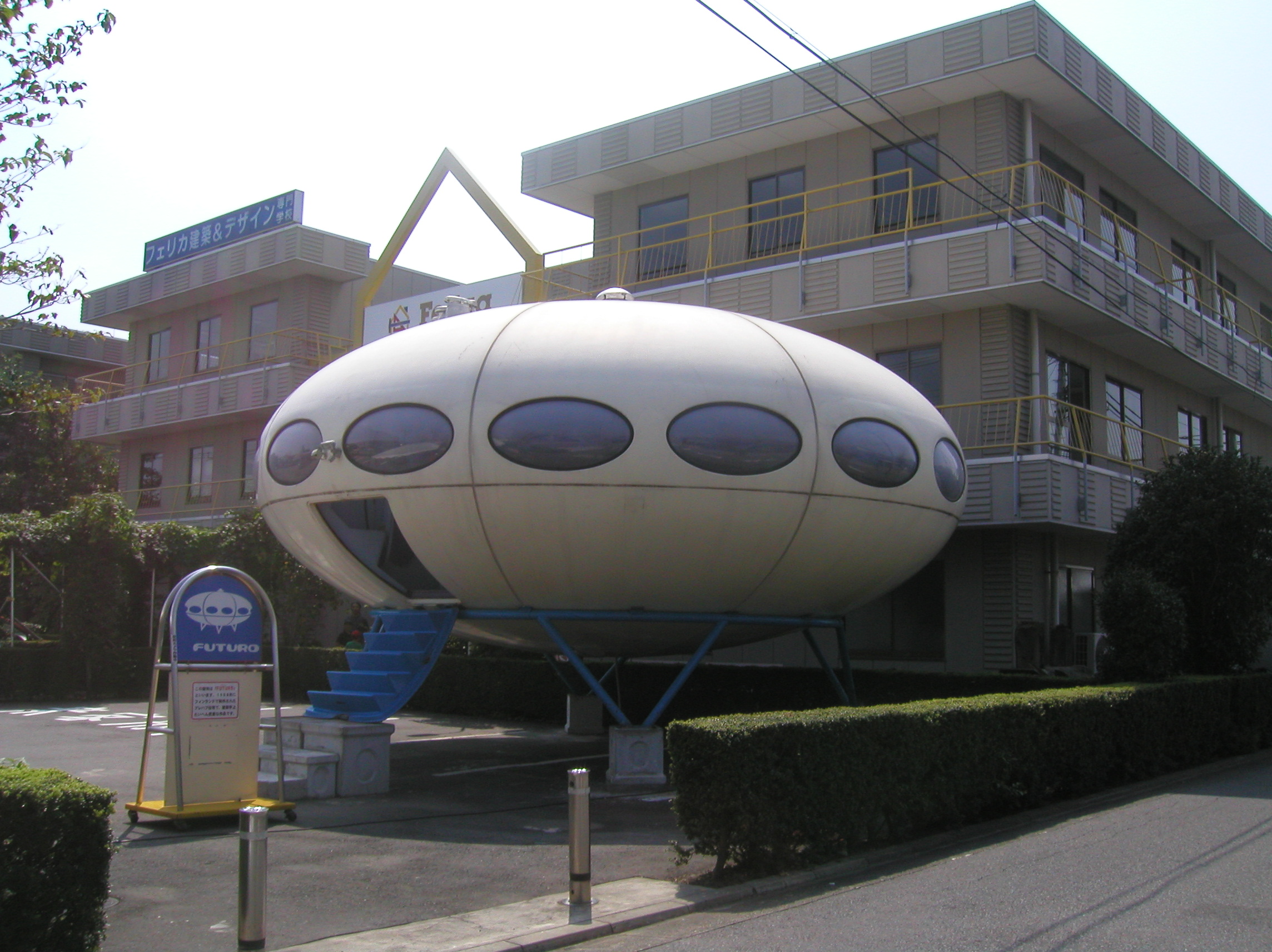 Location note: the address for this Futuro is the Felica Academy address from the Academy website as translated by Google Translate. If that address is put into Google Maps it is not found so we can only assume the translation is less than perfect but since the address is from the Academy website we have assumed it is correct. A search in Google Maps using the co-ordinates will return the Futuro.