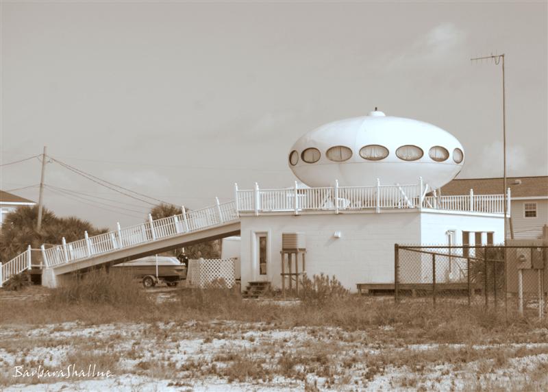 As noted earlier the Pensacola Beach Futuro seems to have been photographed more than many of the other Futuros so there are a great many photos to choose from when thinking about portraying this Futuro. In our opinion the shots below by Barbara Shallue that were posted on 012312 to her blog Confessions Of A Photography Addict are definitely among the best.