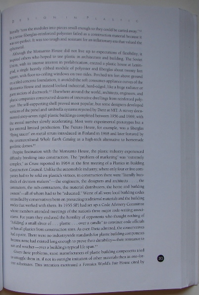 On page 328 of the book there is a short paragraph about the Futuro House and the lower part of the page features a faded out image of the interior of a Futuro House in the background.