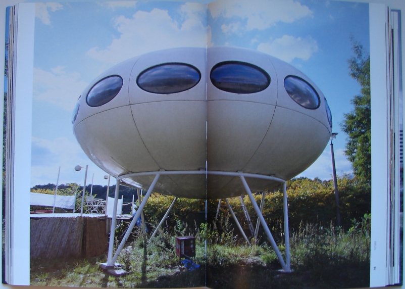 Futuro #000 and the book features several photos of the exhibition and the Futuro.