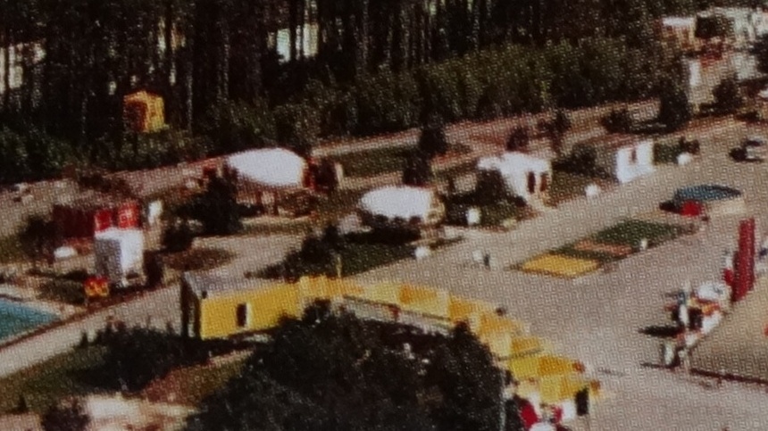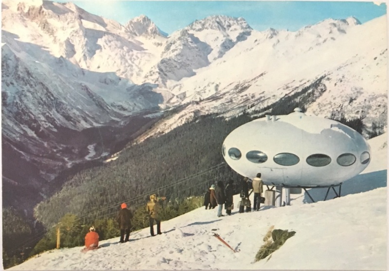 This postcard clearly shows the Futuro during this time on the bottom left of the image.