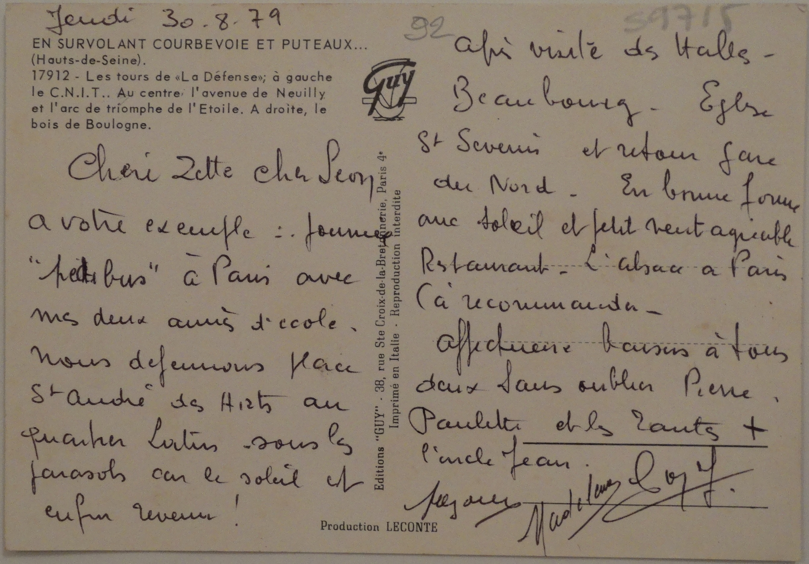 Paris, France. It is undated but almost certainly hails from the 1970's.