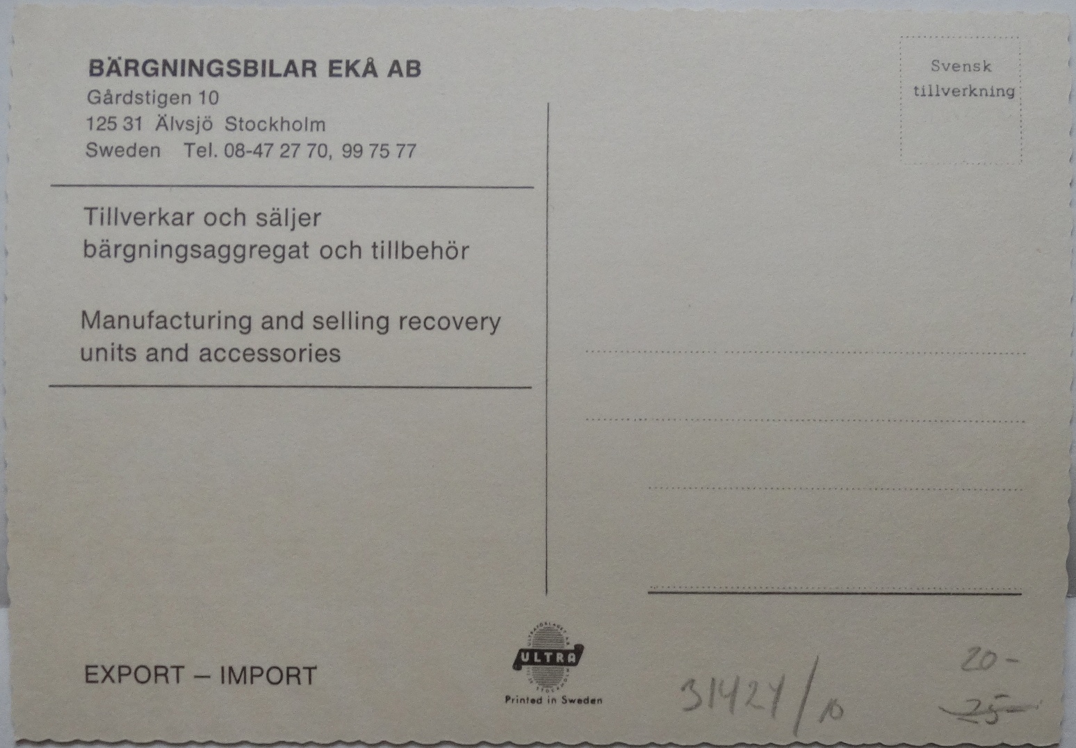 Bärgningsbilar Ekå ab - Undated | Received 052221