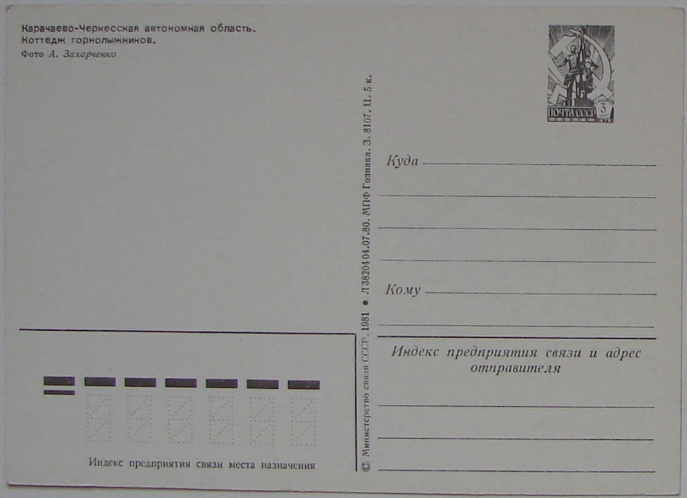 Dombai Futuro. The cards are 7¾" by 4", a somewhat unusual size. They both carry the text (translated by Google) "Karachay-Cherkess Republic Dombai" on the front.