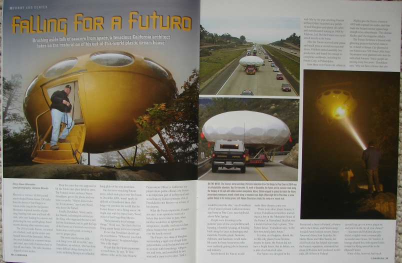 Dwell featured a two page Futuro article which included some commentary, a couple of nice though very "70's" photos along with a cool panoramic photo of the