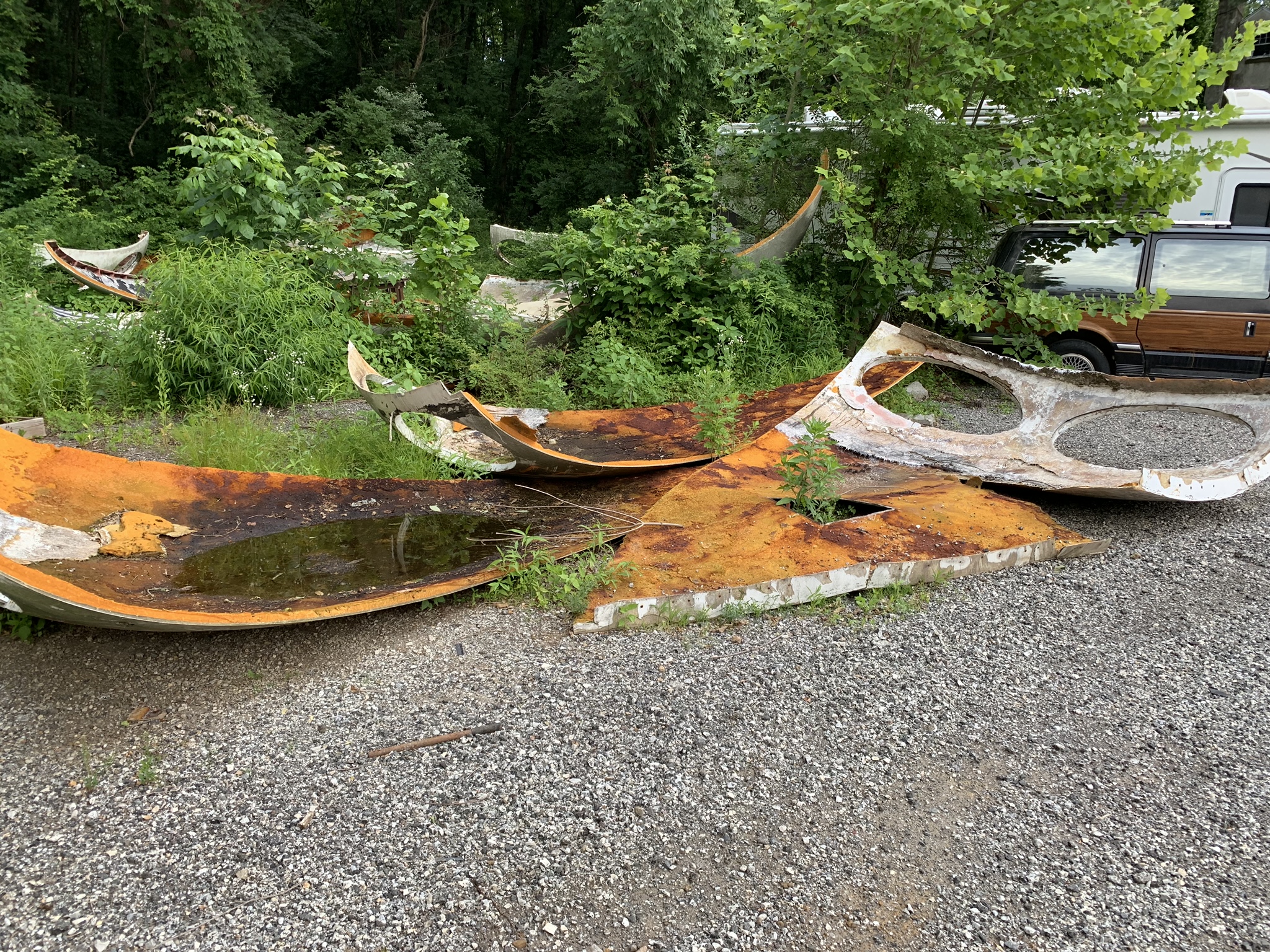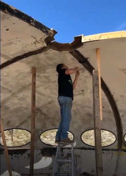 And; speaking of doors, we received this series of photos recently from Damien Downer (thanks Damien) illustrating the current condition (061219) of the shell segments of the second Joshua Tree Futuro. While the owner retrieved the door from Media and installed it in the first Futuro in Joshua Tree as we just saw in the video above, he has not yet had the chance to get the bulk of the Media Futuro moved. Looks like once he does that unit is going to be one heck of a restoration/reconstruction project.
