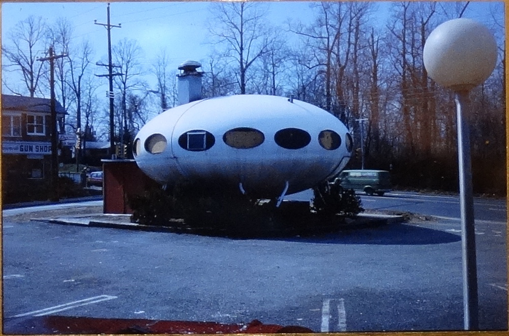 "lived in Media/Lima, outside of Philadelphia, PA, nearly my entire life so I remember this Futuro very well! My Father used to take me to a small gun shop that was located on the corner, across Harding Drive, from the Futuro which you can see in the slide and (the building) still exists today.'