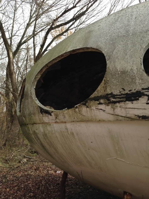 aka Skycat Ranger emailed us the other day and told us about a photo (below) he had taken of Media on 053014. The photo clearly shows the condition of the Futuro is continuing to deteriorate; if you look to the left rear of the unit you can see that the unit appears to be seriously damaged and in response to a comment on the photo