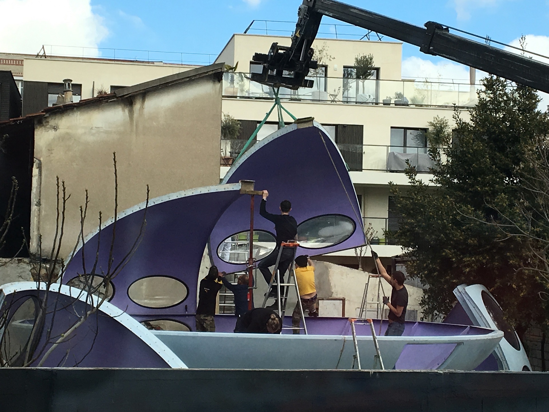 The sequence of photos below are from the Instagram feed of galerie_54 (Eric Touchaleaume) and show the Futuro at various stages of its preparation for the exhibition. From top to bottom, left to right the photos were posted 061417, 061717 (two photos), 061817 and 062217 (two photos).