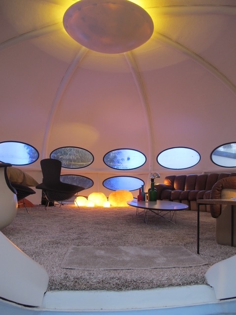 We think the Futuro's interior looks superb and we love the design choices which are both time period appropriate and perfect for the interior of a Futuro. In particular the original 1974 De Sede sofa and Eams Surf Model table circa 1975 seem absolutely apropos for a Futuro.