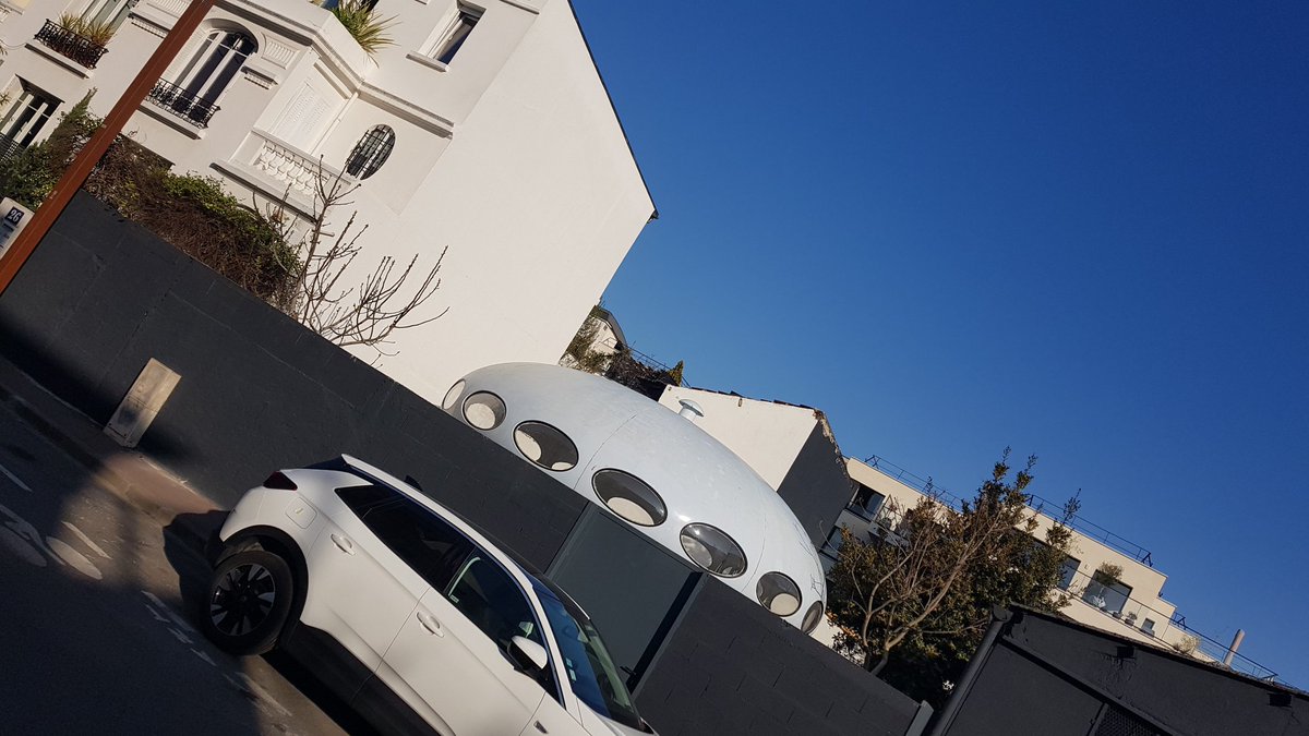 This Futuro was removed from Marseilles sometime in 2018 but until now we had no idea of its new location. However, on 040119 Stanimir Paparizov tweeted the photo below; the location of the photo has been referenced only in general terms, specifically as being "in the area of the Seine" or "in the Paris suburbs" and the Futuro is not specifically identified as the one previously located in the Marseilles area.