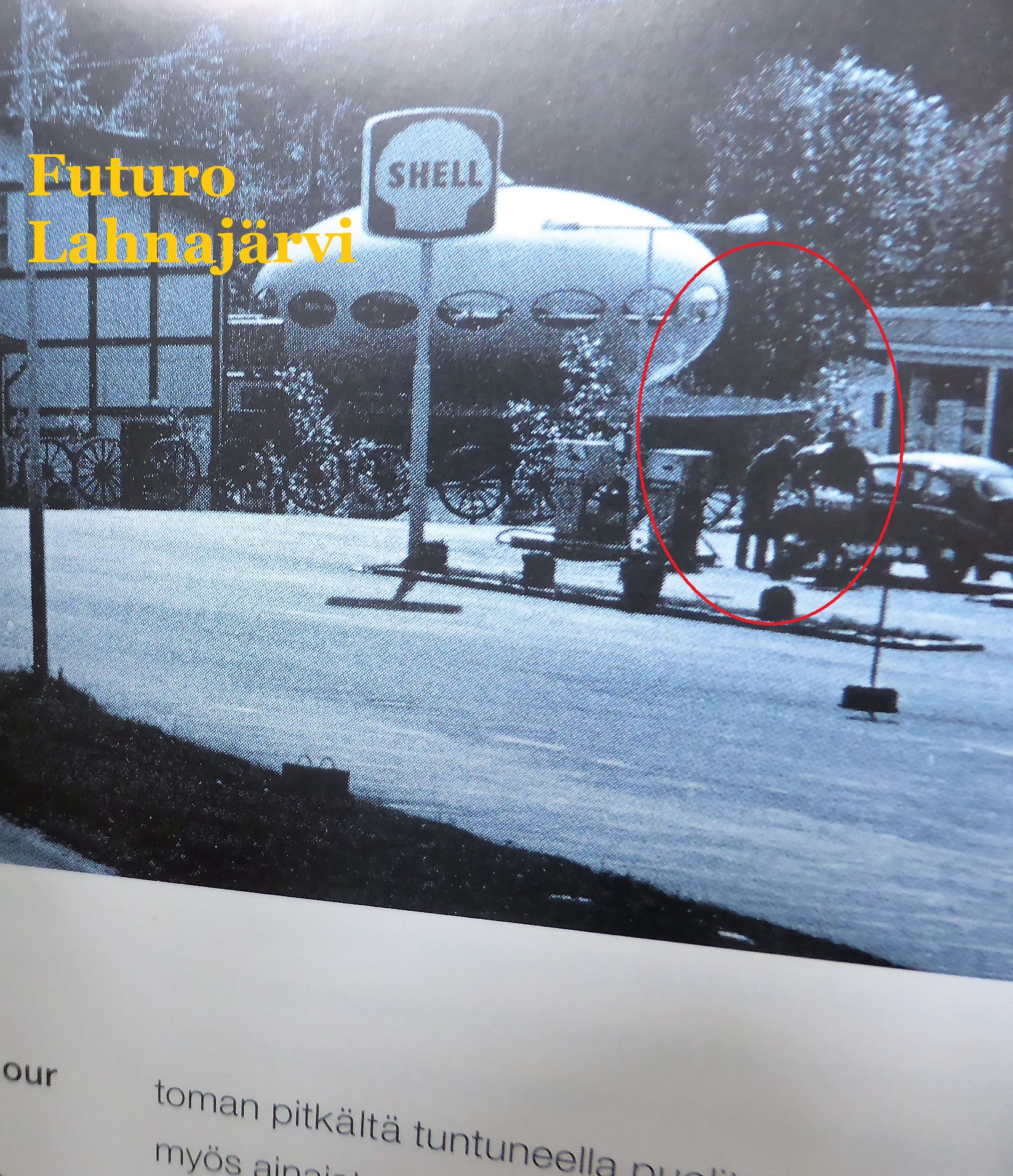 This multi-view postcard of a Shell Gas Station/Rest Stop on Lake Lahnajärvi shows this Futuro in one of the photos (top left); but only just - you have to look closely.