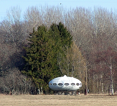 "This object, looking like everyone else's idea of a flying saucer from outer Space, is the Finnish idea of the perfect weekend cottage." (Quoted From: Article in The Guardian newspaper by Justin McGuirk dated 051012)