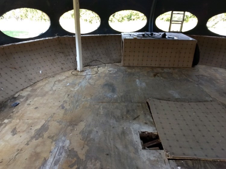 Perhaps most interesting was the discovery that despite it appearing that this Futuro had no lower viewing windows during the "strip down" part of the restoration project it was actually discovered that there were indeed lower viewing windows that had been filled in and covered up many years ago.