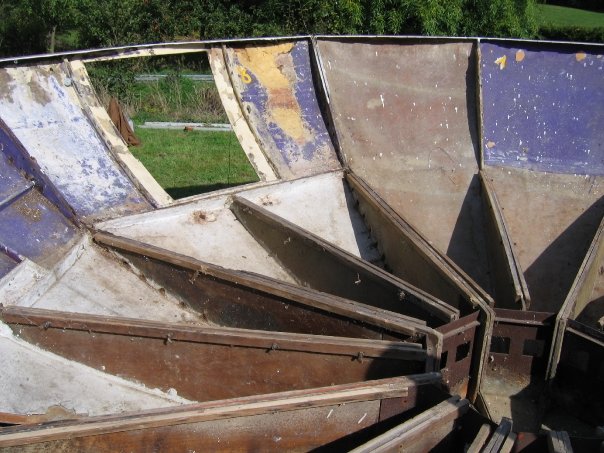 This next series of photos shows the Futuro prior to its restoration as well as through disassembly, restoration and subsequent reassembly; they provide a good look at the construction of the Futuro. The photos are courtesy of the XXO Facebook Page.