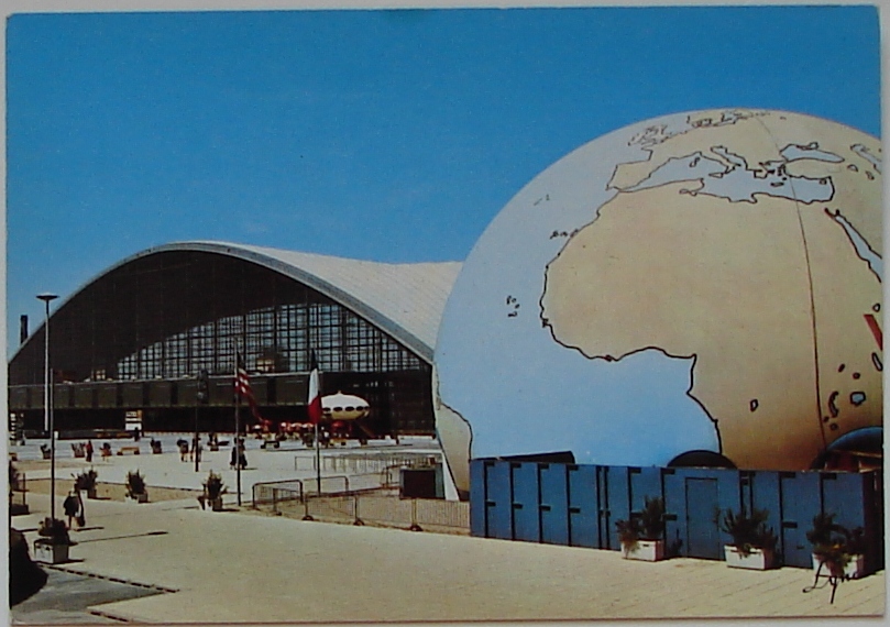 The photographs below clearly show that the orientation of the Futuro changed while it was at the CNIT. The first postcard is postmarked 1975 and the second is postmarked 1983 (though those are the postmark dates not the dates the photos were taken). In the first postcard we can see that the entrance to the Futuro is oriented parallel to the front of the CNIT; in the second we find the steps facing directly away from the CNIT.