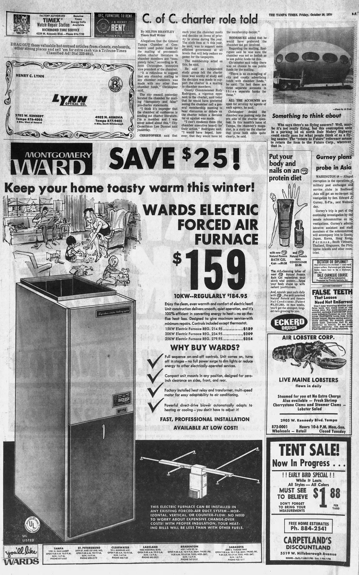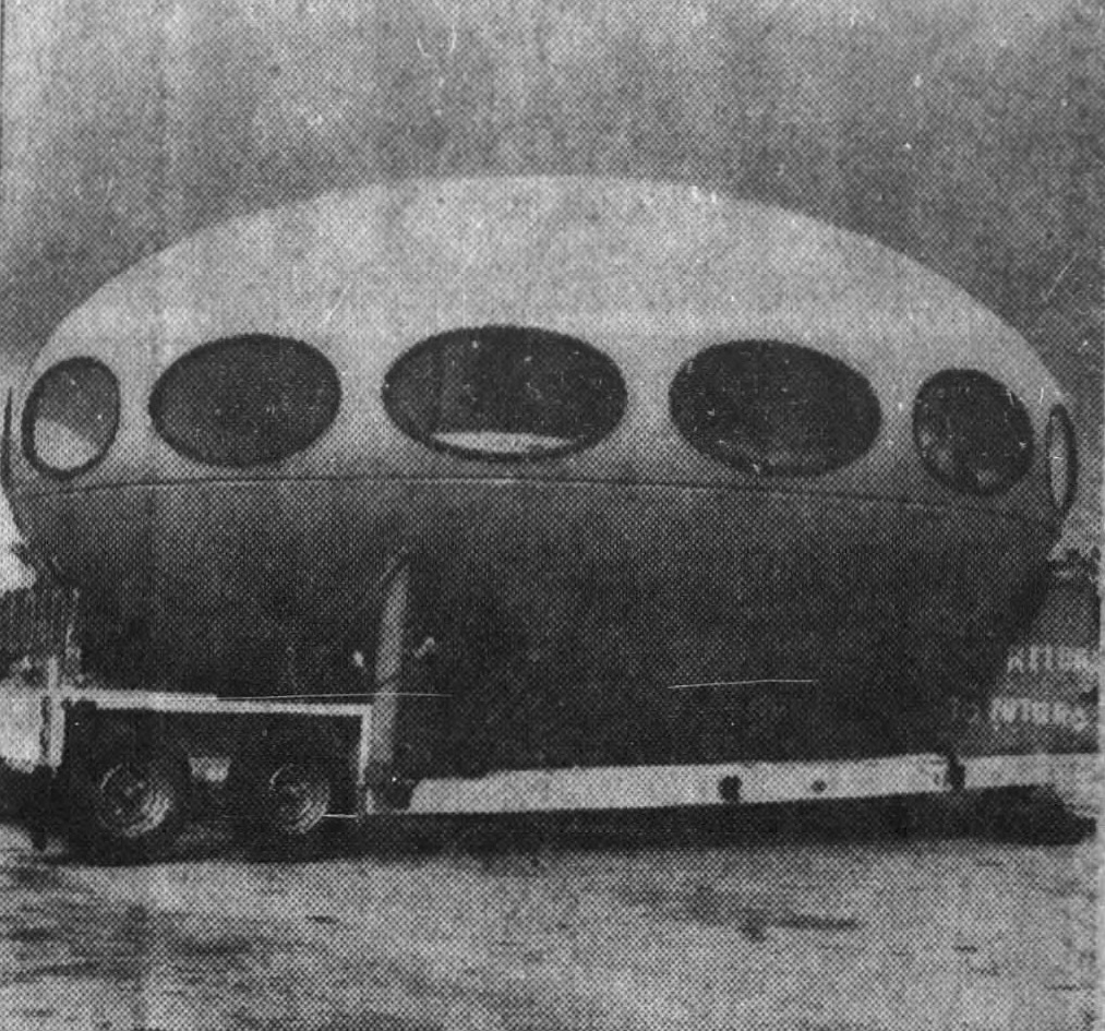 The 103070 issue of The Tampa Times carried a short article along with a photo of a fully assembled Futuro (described not as a Futuro but as a "contraption") sitting on a flat bed truck in a parking lot on N. Dale Mabry Hwy.
