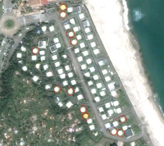 Most striking is the absence of many units and Alexander tells us there is no sign of them (and no wreckage). The custom Google Map (041114 satellite imagery) below shows the remaining Futuro units (blue markers plus one red one showing the "hidden" Futuro location), the one time locations of four that are no longer there (purple markers) and also highlights an area which was covered with Futuro and Venturo units that is now just a grassy area. You can access a larger screenshot of the map