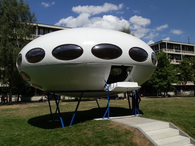 In correspondence with Marko following his visit to Munich he let us know an interesting fact about the restoration. While the Futuro was restored without interior fittings the work did include the addition of one modern upgrade; the door can be raised and lowered electronically at the press of a button. Marko also sent us this rather nice shot of the Futuro taken with the door in a partially open position while it was being opened electronically.