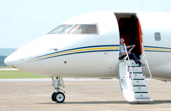 The doorway installed in a Futuro is often described as resembling the hatch/door to an aircraft and that is quite an accurate analogy. While many larger aircraft have a door and separate steps others have a design exactly like the Futuro where the door and steps are integrated and hinged at the bottom; take a look at the first two photos below - first the Futuro (in this case one of lwsdm's excellent set of photos of Futuro 001 in Espoo) and second a photo from The Gadsden Times illustrating this type of aircraft doorway; the similarity is evident.